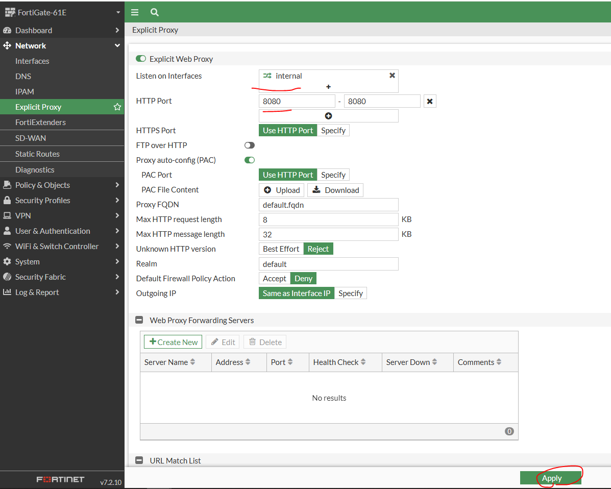 Forti Proxy 없이 Fortigate를 이용해서 Proxy 구성이 가능 합니다.