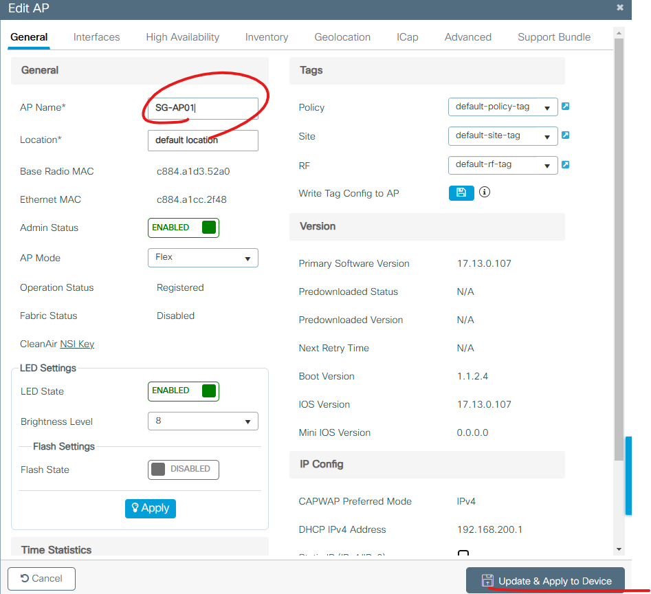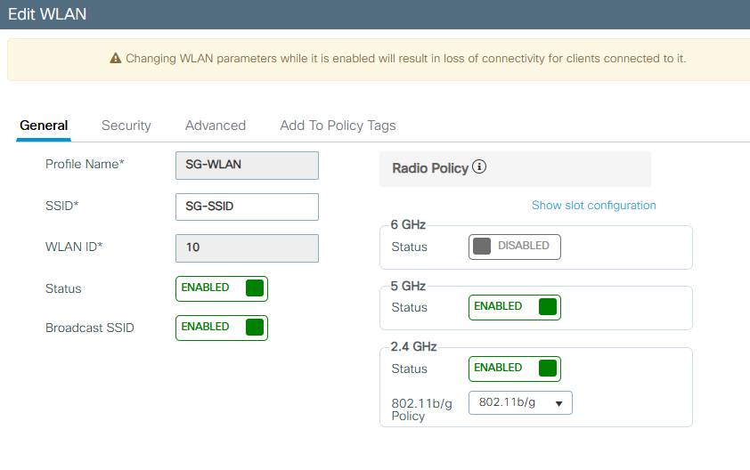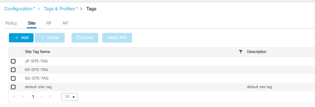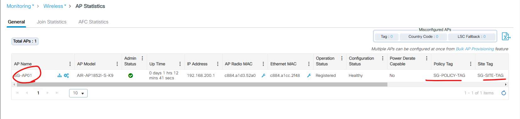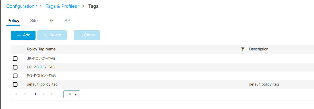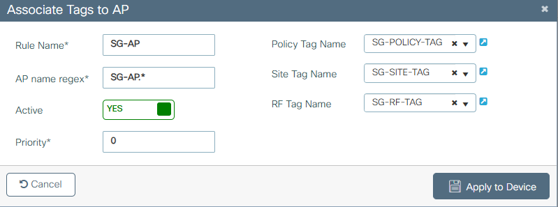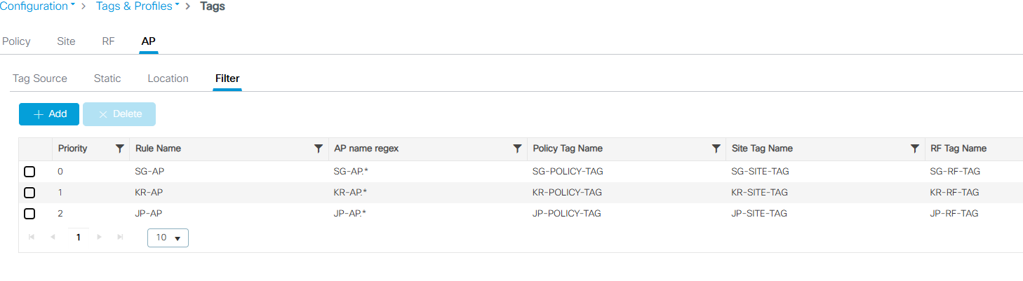 AP hostname이 SG-AP0X로 시작하면, policy tag, site tag, rf tag 모두다 SG tag가 AP에 할당 됩니다.