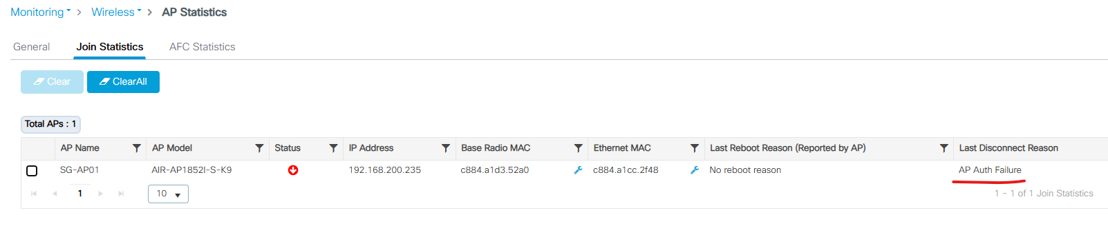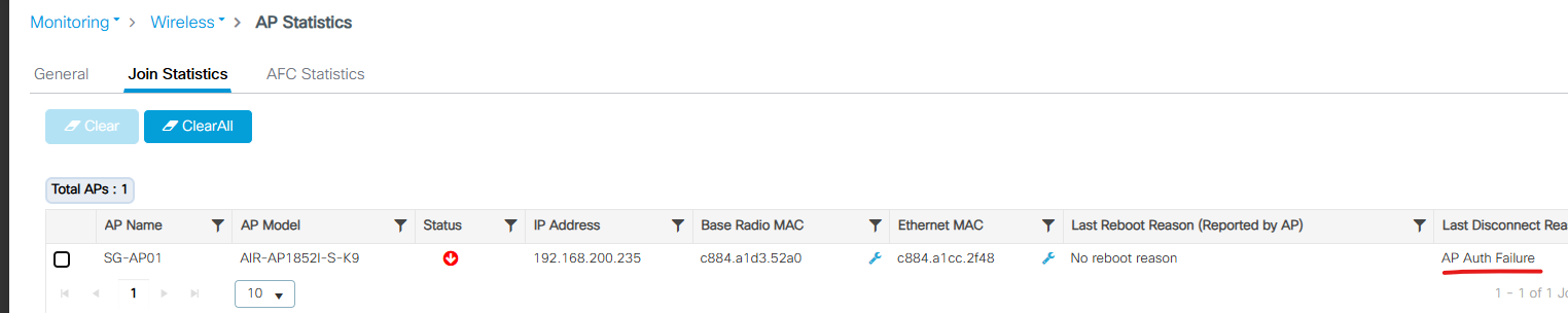 6. Monitoring -> Wireless -. AP Statistics에서 Join Statics를 클릭해서 보시면