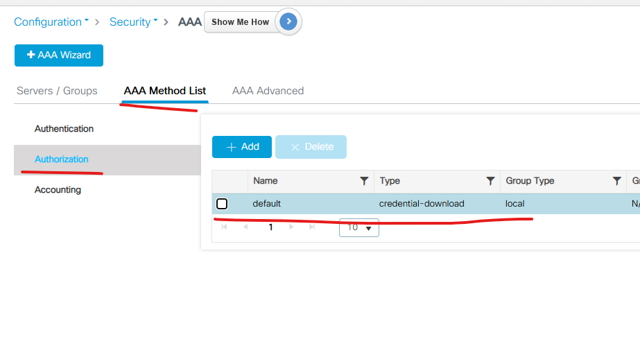 1. Configuration -> Security -> AAA 클릭 합니다.