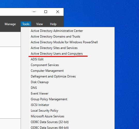 0. Tools -> Active Directory Users and Computers를 클릭 합니다.