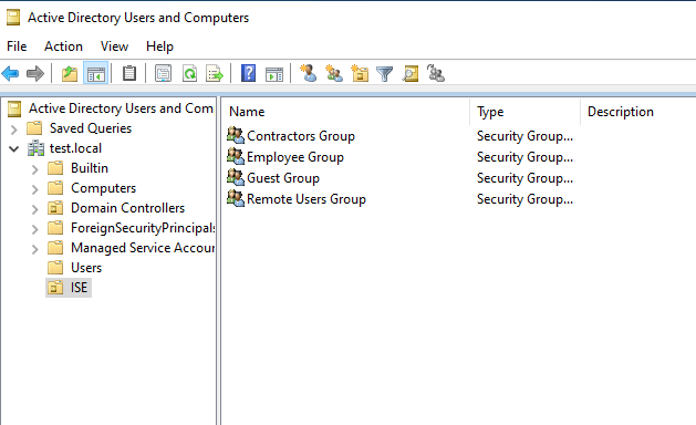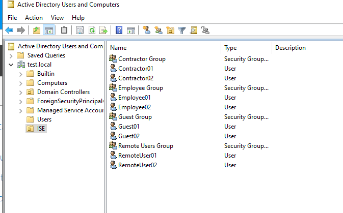 그리고 ISE OU폴더에 Group과 User를 생성합니다.