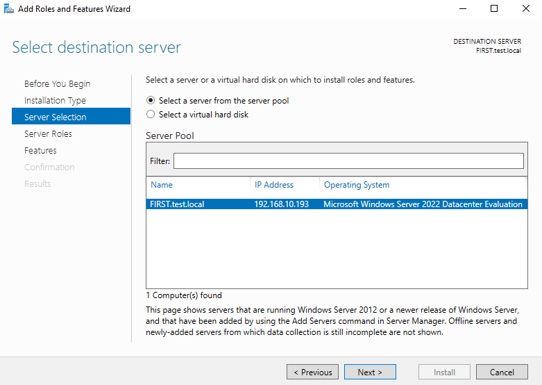 1. Add Roles and Features를 선택 합니다.