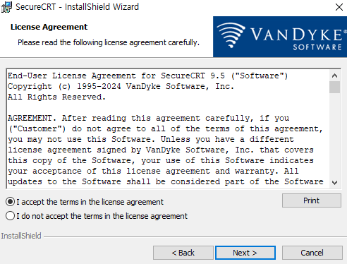1-13 Secure CRT를 실행하고 I Agree버튼을 클릭합니다.