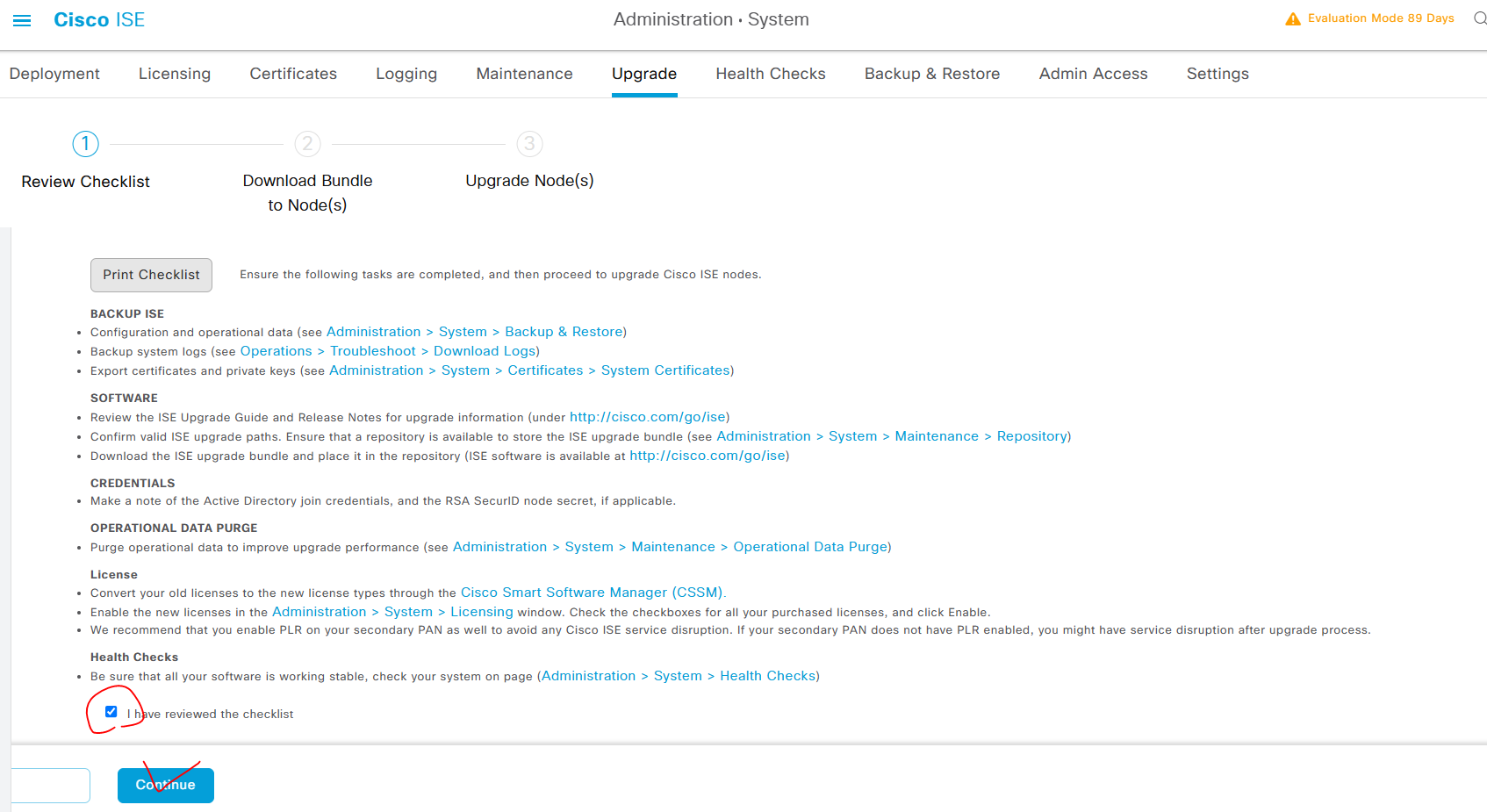 이제 cisco ISE upgrade할 준비가 완료 되었습니다.