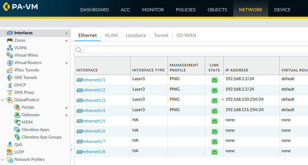 5. GP PALOALTO는 E1/3 192.168.1.254로 AD2/DUO2패킷을 전달 받습니다.