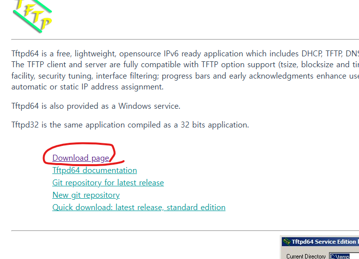 Tftpd64 The industry standardTFTP server Tftpd64 is a free, lightweight, opensource IPv6 ready application which includes DHCP, TFTP, DNS, SNTP and Syslog servers as well as a TFTP client. The TFTP client and server are fully compatible with TFTP option su