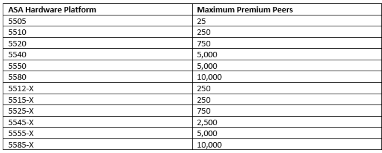 하드웨어적으로 최대 지원되는 Anyconnect 유저수