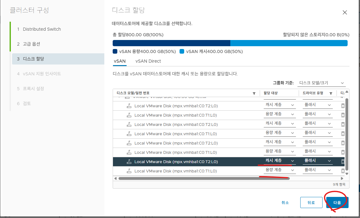 꼭 host별로 한개 디스크는 캐시 계층으로 선택되어야 합니다.