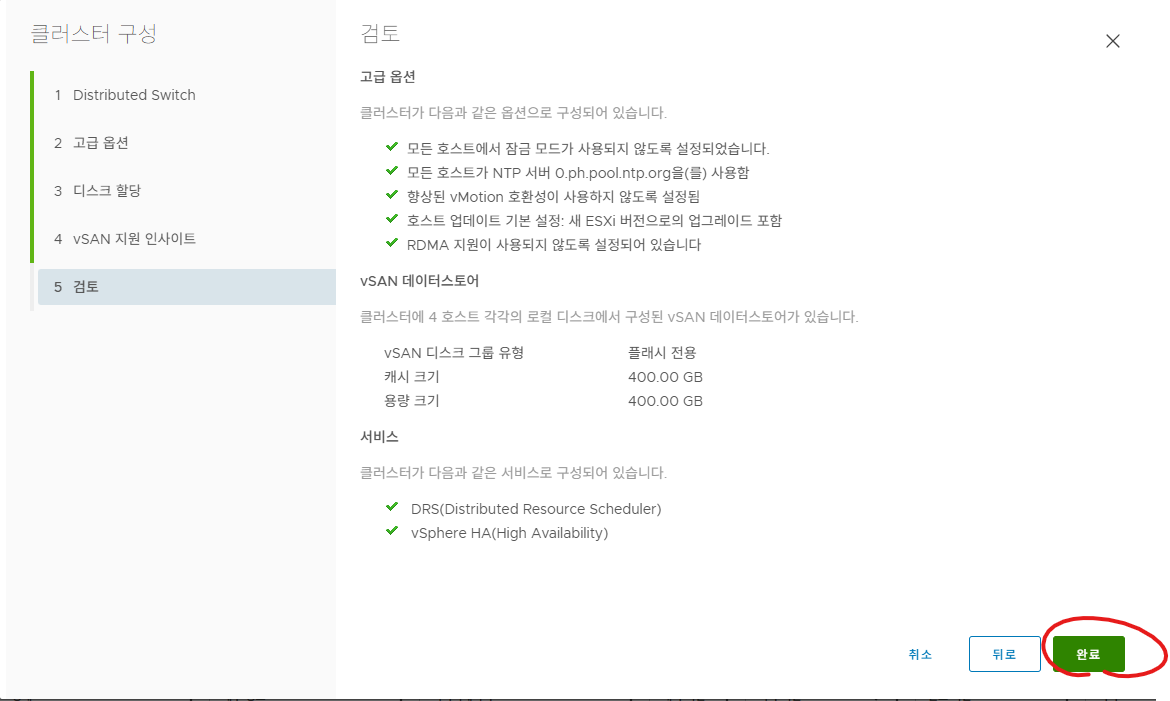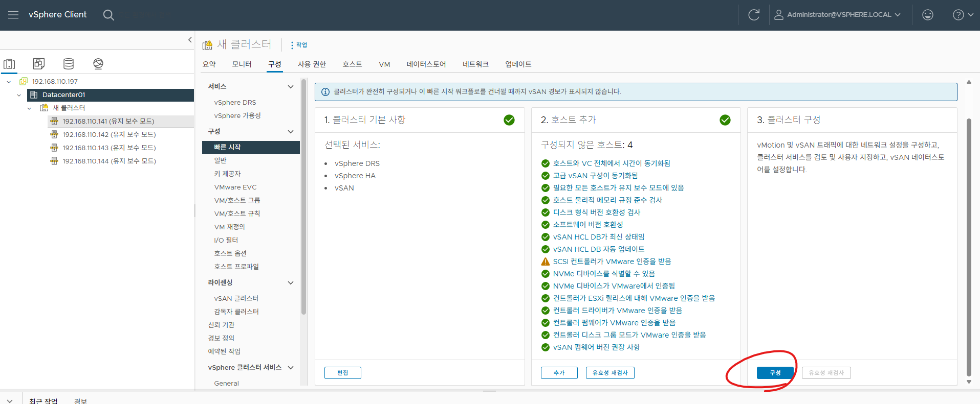 마지막으로 클러스터 구성버튼을 클릭 합니다.