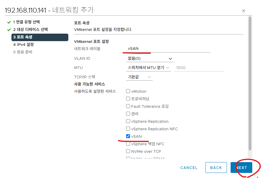 11. vSAN 관련 랜카드를 생성해야합니다.
