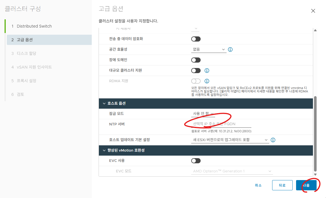 아래처럼 NTP서버 주소를 입력하고 다음 버튼을 클릭 합니다. 설정값 변경없이 나머지는 디폴트값 유