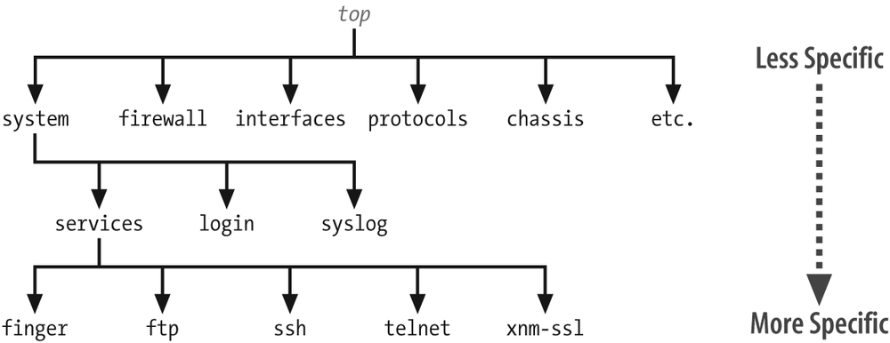 Juniper는 리눅스 기반에 동작하기 때문에 리눅스에 Statement Hierarchy 구조를 사용합니다.
