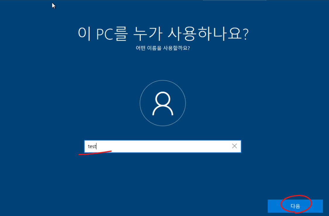 19 test유저를 클릭하고 다음 버튼을 클릭합니다.