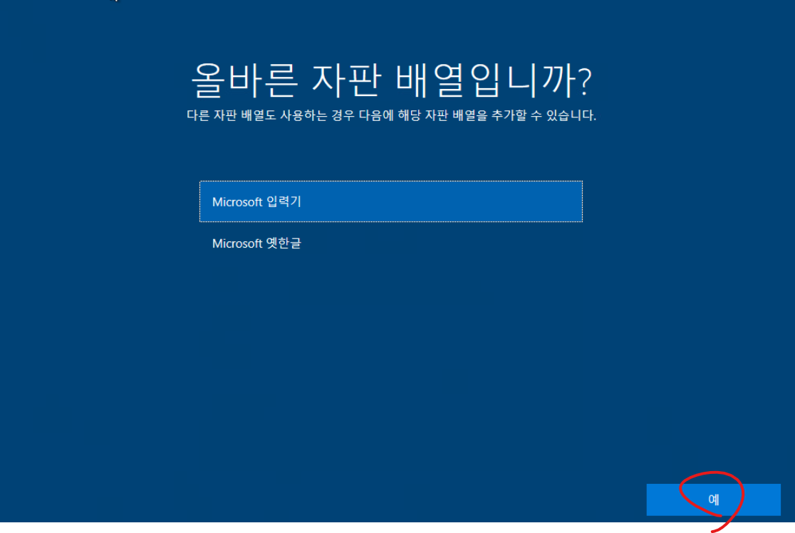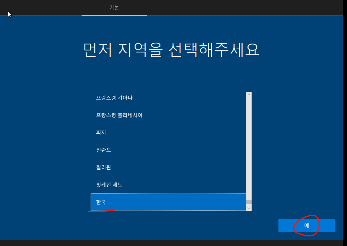 14. 지역 한국 선택후 예 버튼을 클릭합니다.