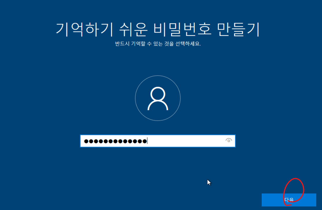 20. 패스워드를 입력하고 다음버튼을 클릭합니다.