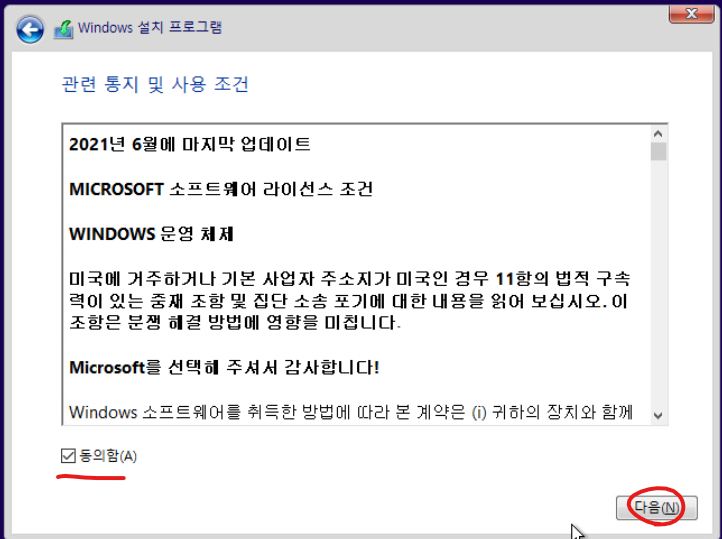 9. 동의함 클릭후 다음 버튼을 클릭 합니다.