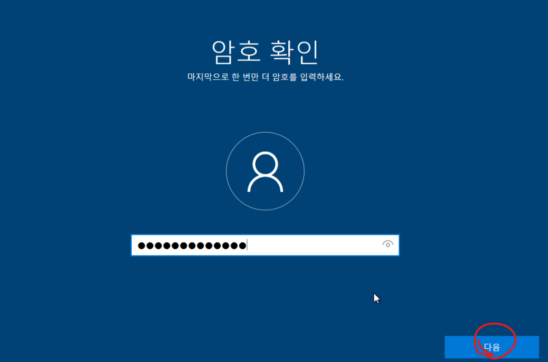 21. 암호를 다시 입력하고 다음버튼을 클릭합니다.