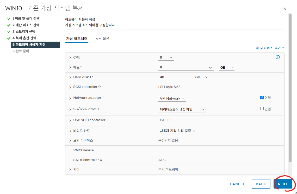 6. 아래 체크해서 HARDWARE를 변경 할수 있게 합니다. 그리고 Next버튼을 클릭 합니다.