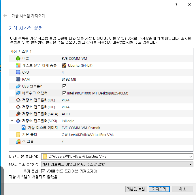 압축이 완료되면 폴더에서 EVE-COMM-VM.ovf 파일을 더블클릭 합니다.