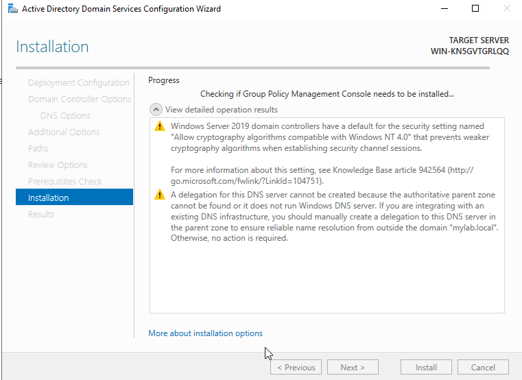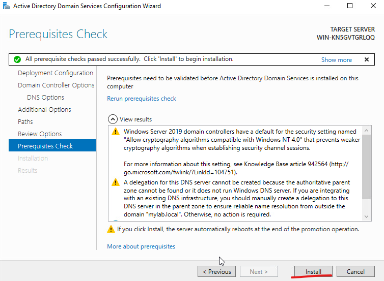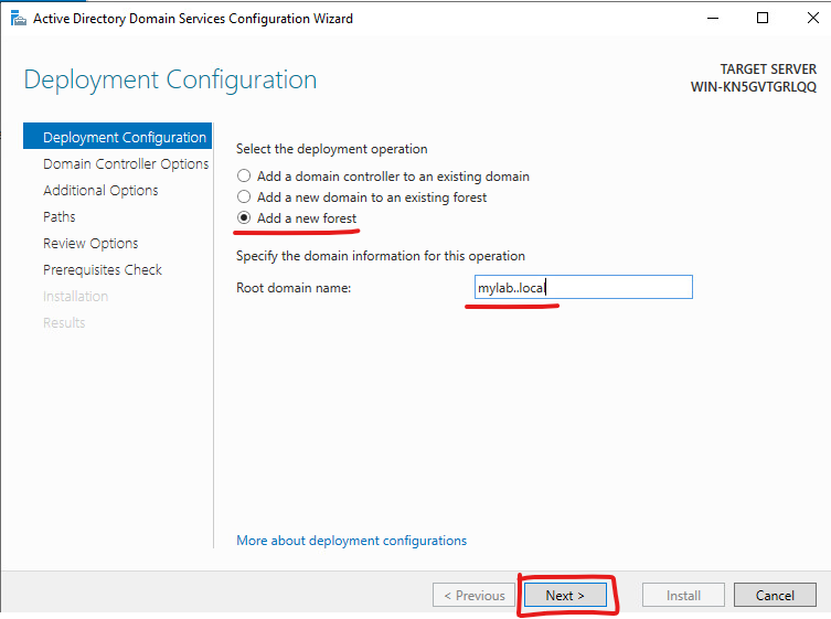 Root domain name: mylab.local를 입력합니다.