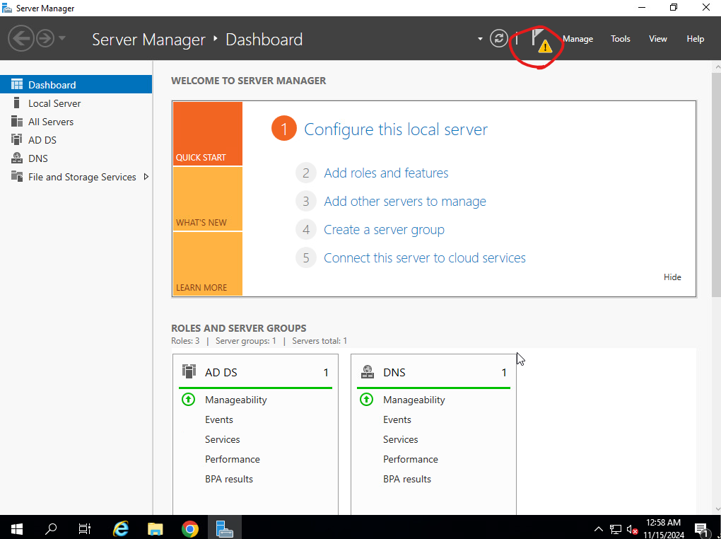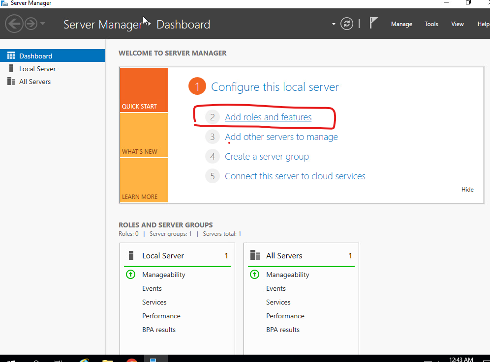 1. Server Manager를 클릭 합니다.