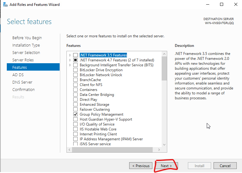 13. NET Framework 3.5 Features를 선택하고 next버튼을 클릭 합니다.