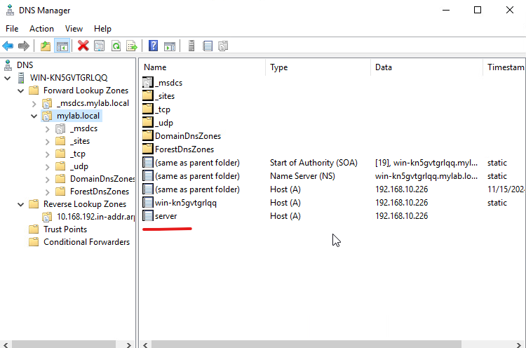 40. server라는 A레코드가 생겼습니다./