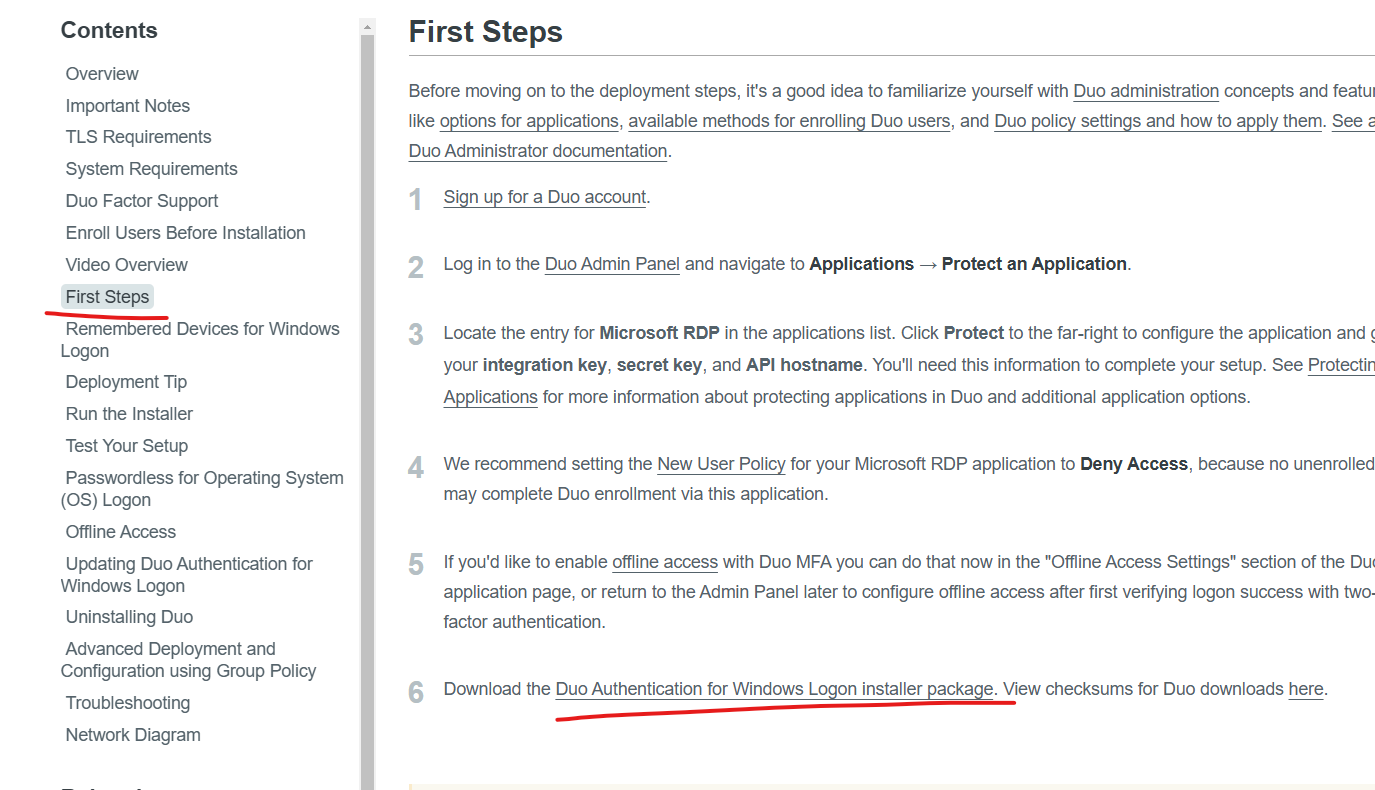 5. First Steps and Duo Authentication for windows logon installer 를 다운로드 받습니다.