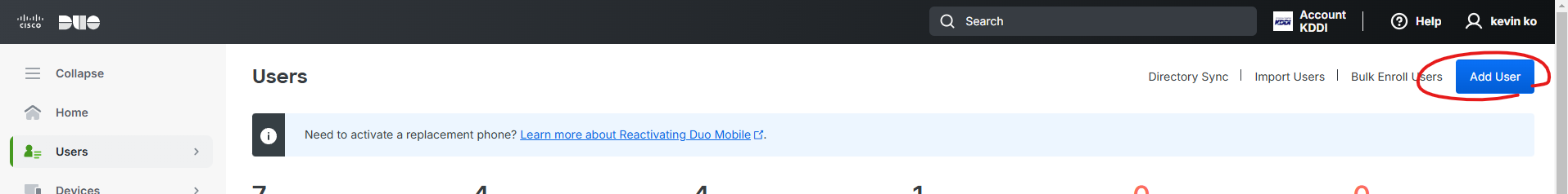2. 또는 cisco duo에서 수동으로 user를 등록하는 방법.