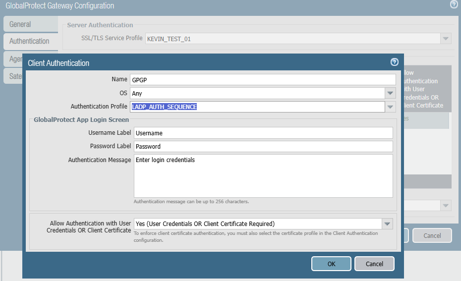 6. Global Protect- Gateway에서 Authentication를 수정합니다.