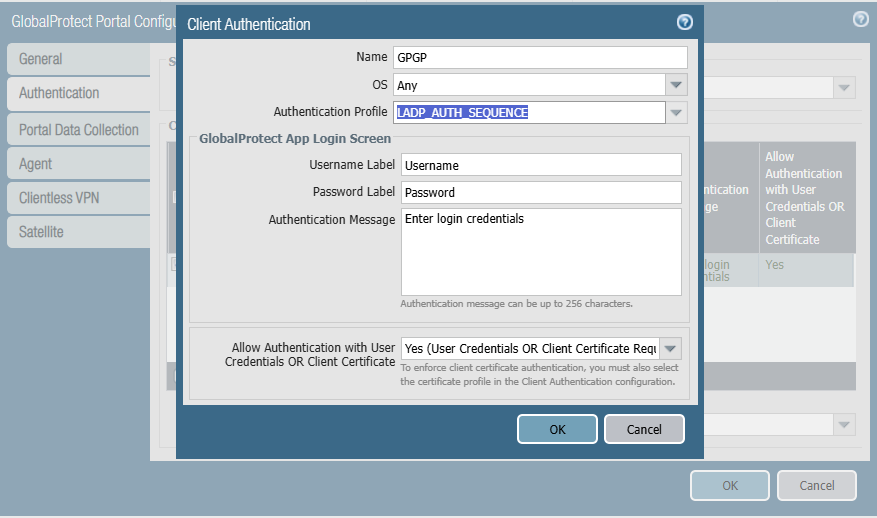 5. Global Protect Portal에서 Authentication 정보를 수정합니다.