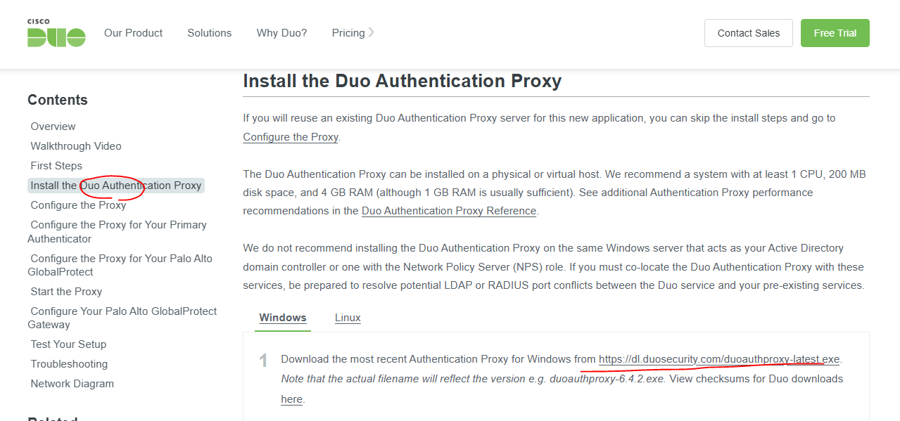 5. 윈도우 서버에서 아래 duo proxy프로그램을 다운로드 받고 설치 합니다.