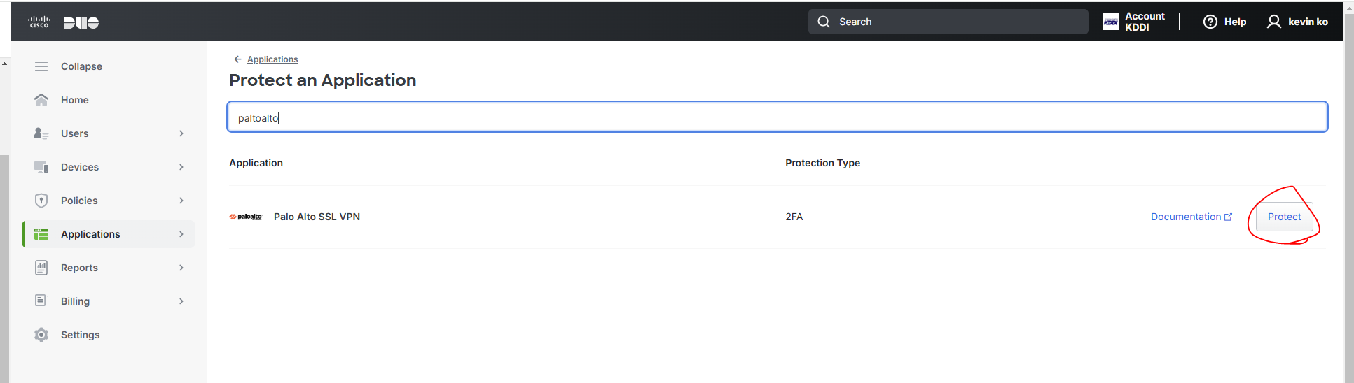 paloalto를 Search하고 Protect버튼을 클릭합니다.
