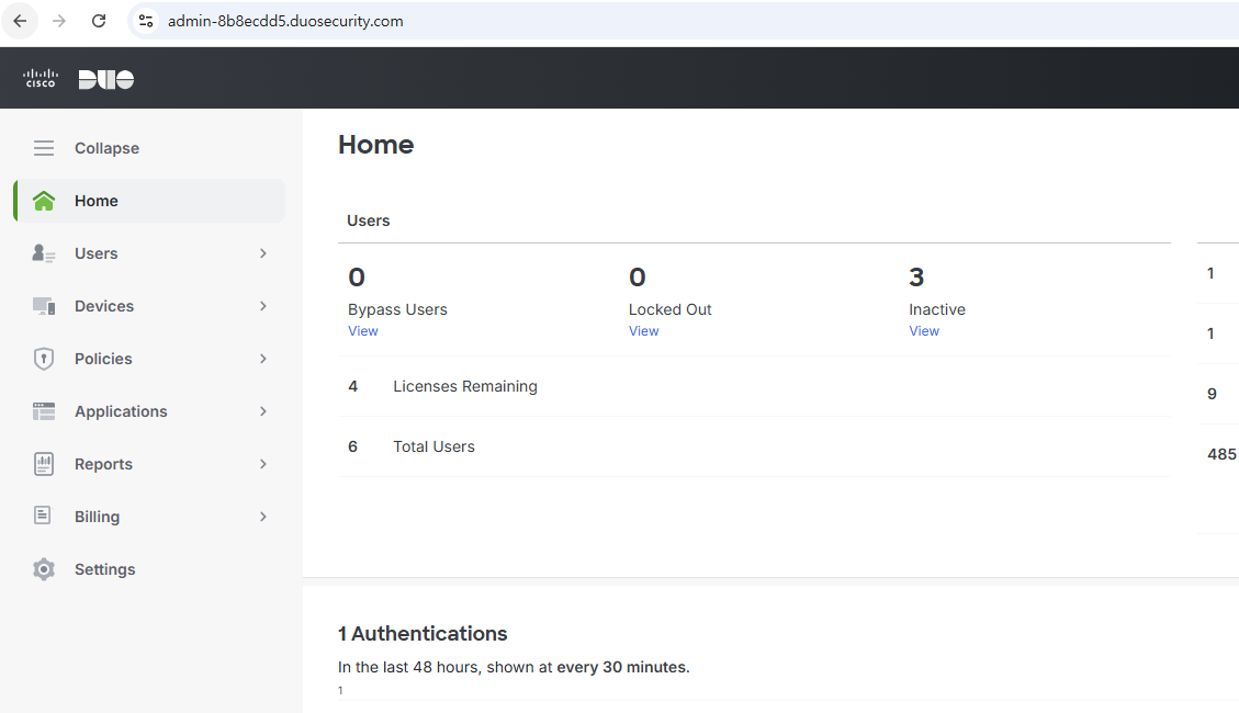 1. Cisco DUO Cloud 계정을 생성합니다. 10 Users까지는 무료로 사용 가능합니다.