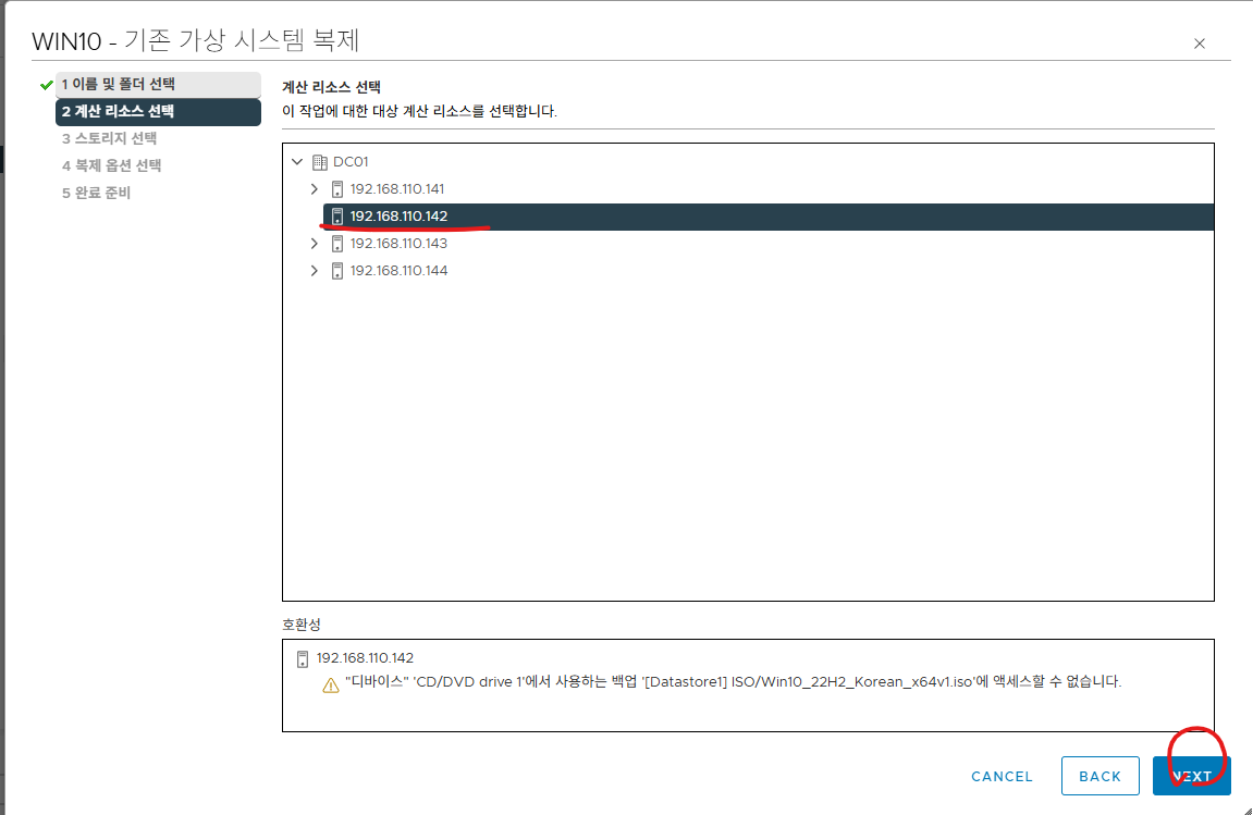4. 3번 VMware ESXi호스트를 선택하고 Next버튼을 클릭합니다.