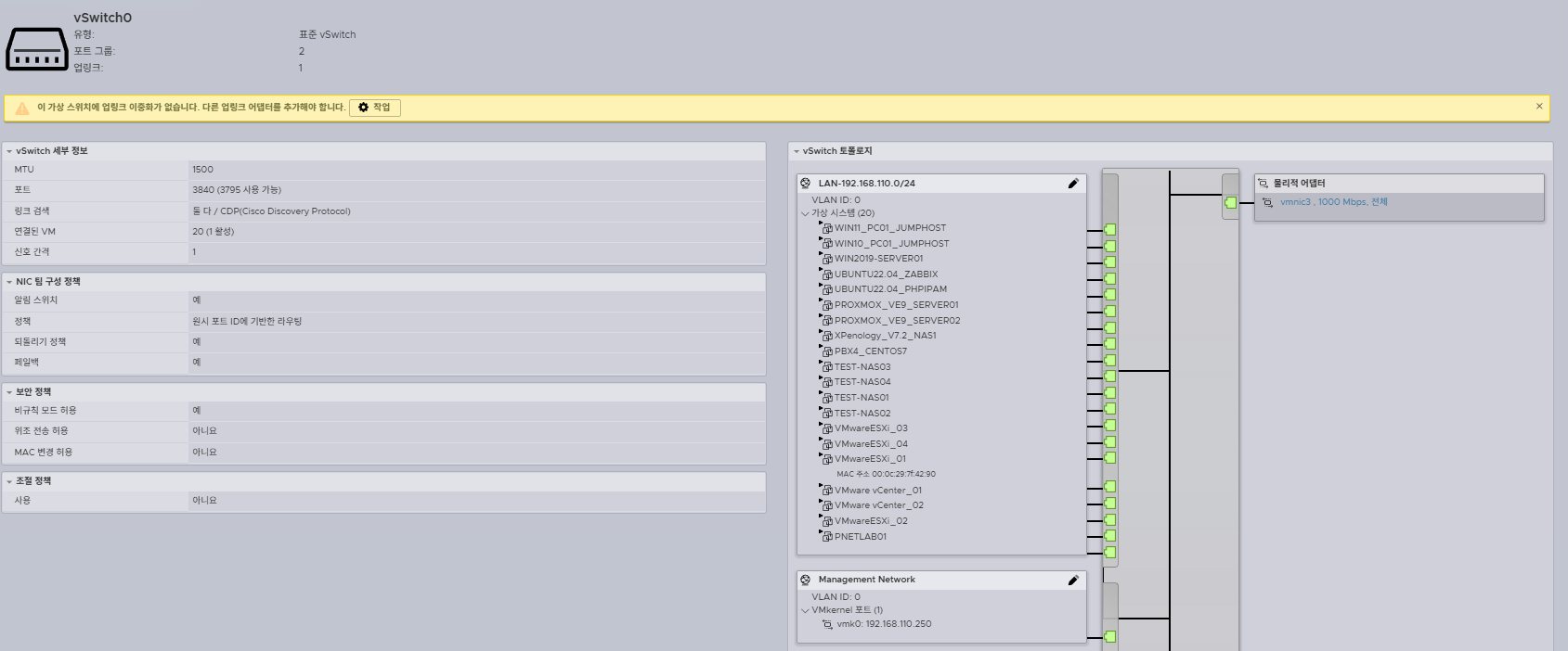 | [VMware vCenter][#10]- vCenter에서 가상 스위치 보안설정 - 윈도우10 인터넷 이슈 해결 - vSS (0) | 2025.10.11 |