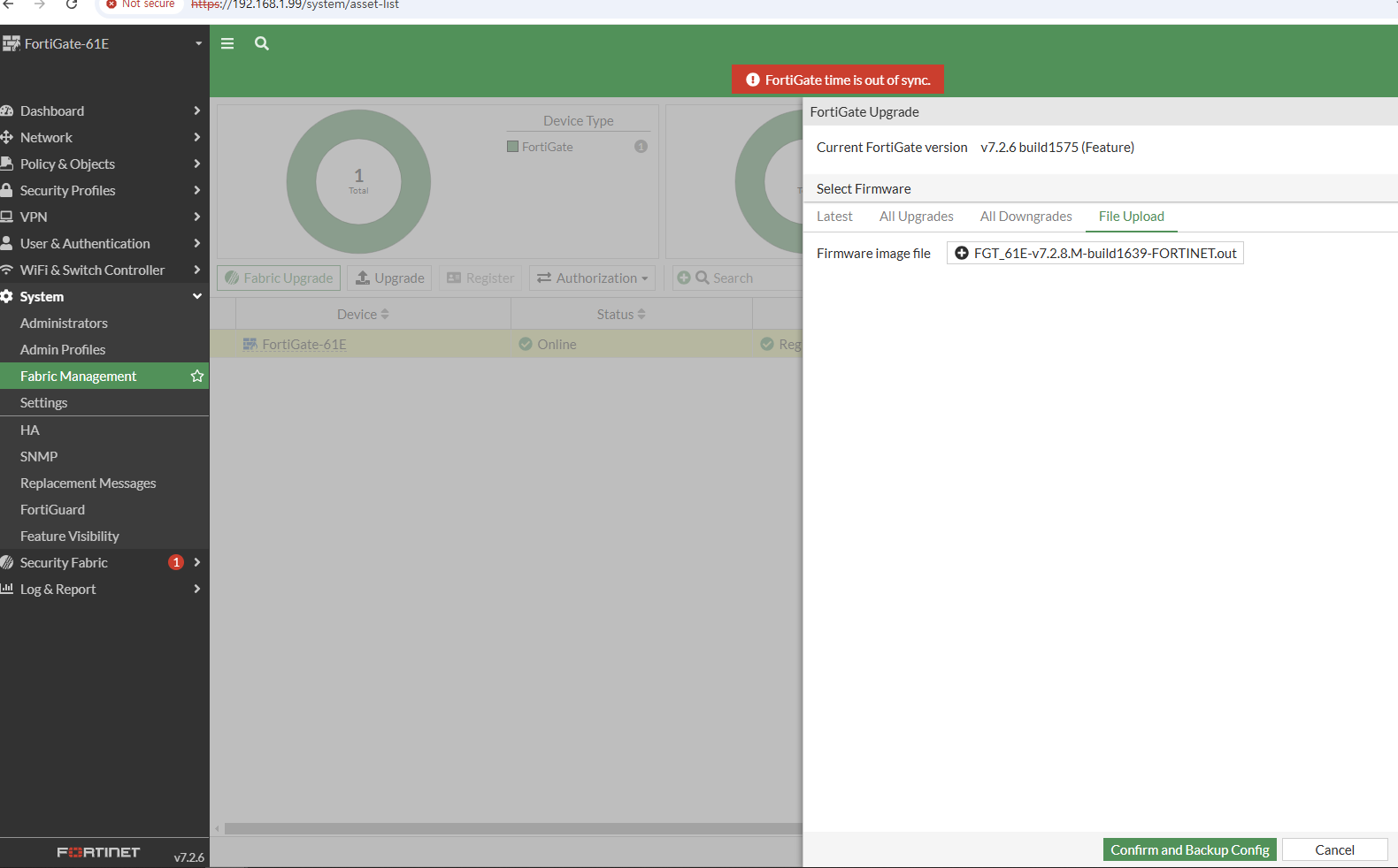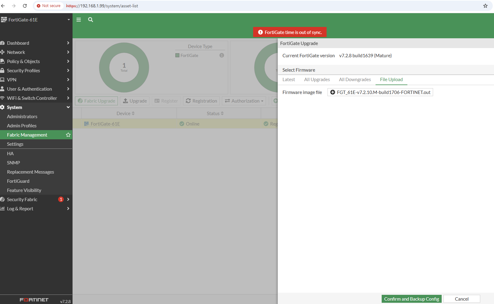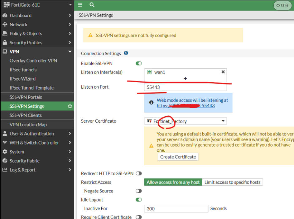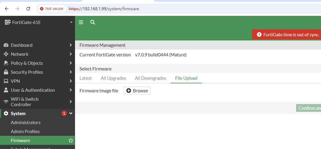 부팅이 정상적으로 완료 되고 FortiGate-61E 로그인창을 볼수 있습니다.