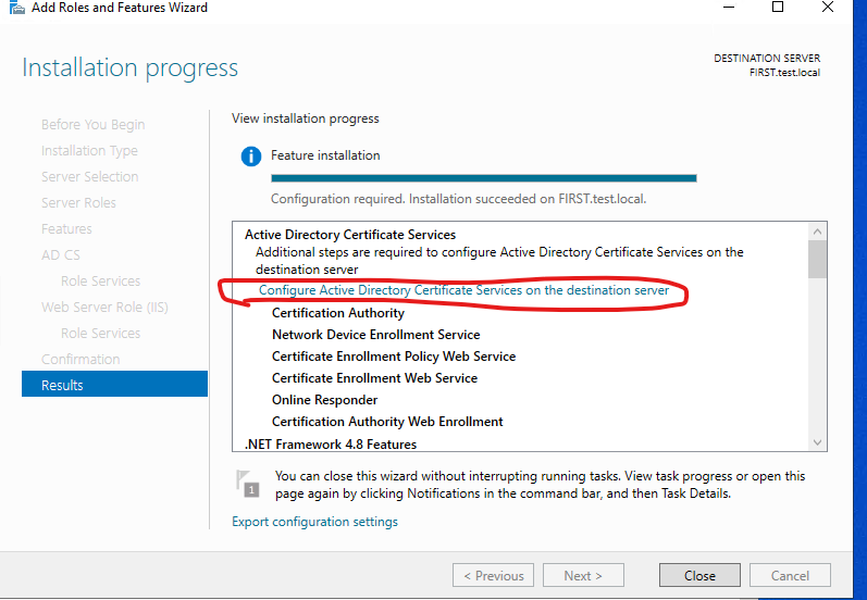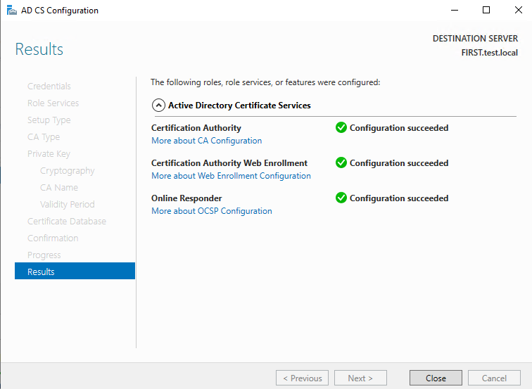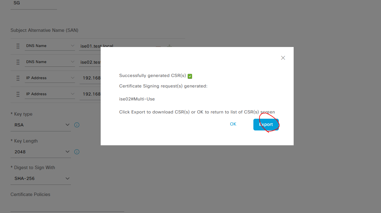 ISE CA keys export completed successfully
