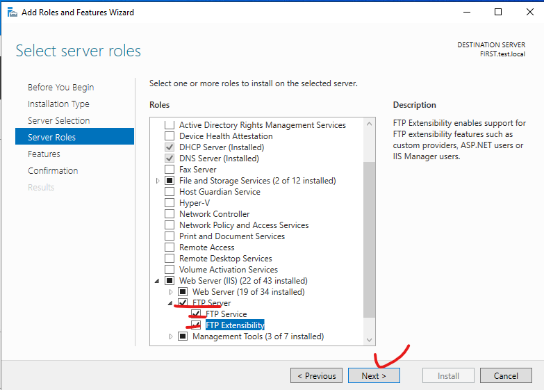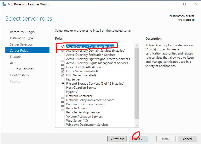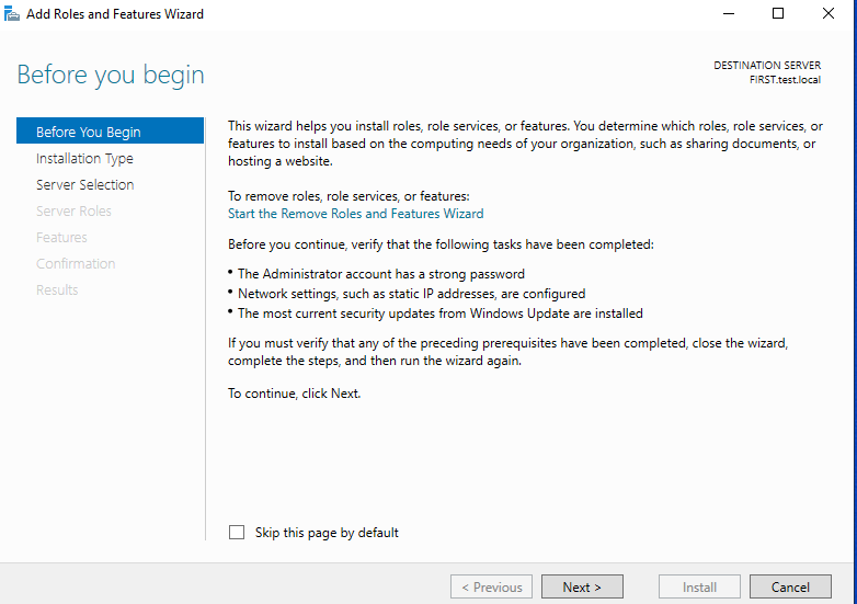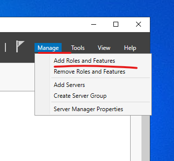 1. Add Roles and Features를 선택 합니다.