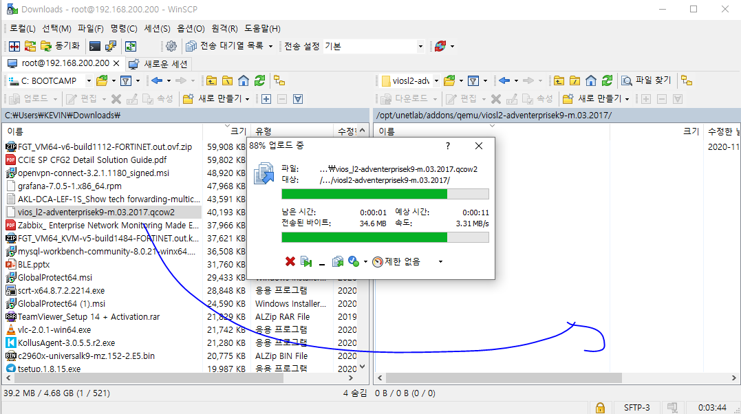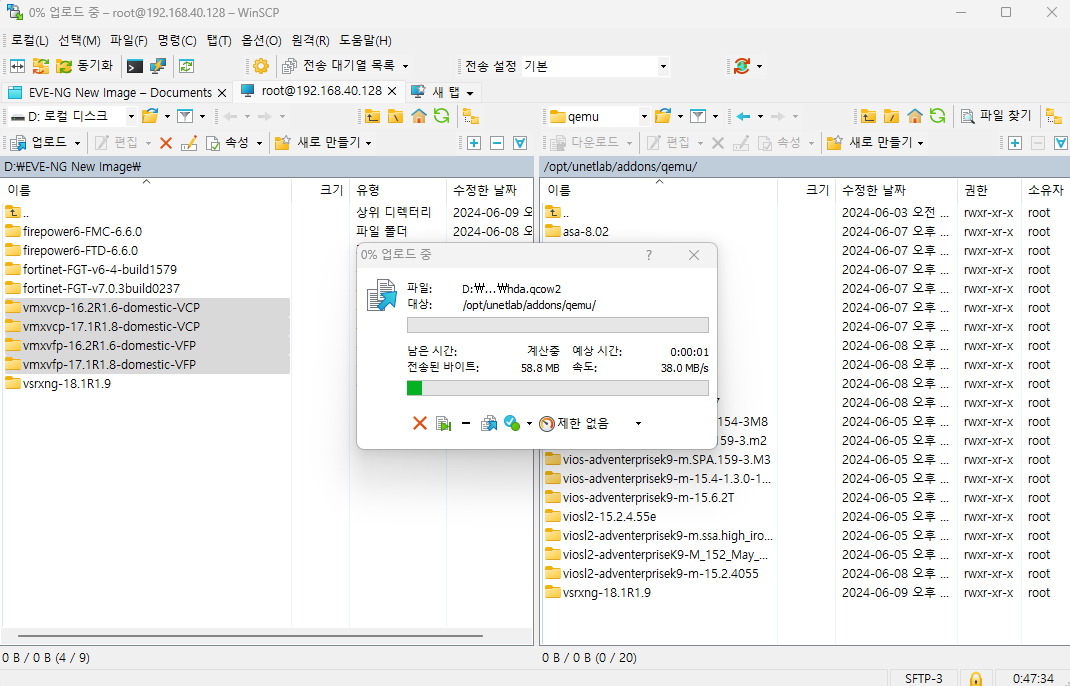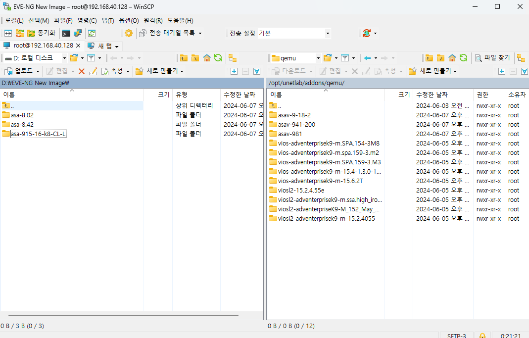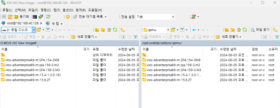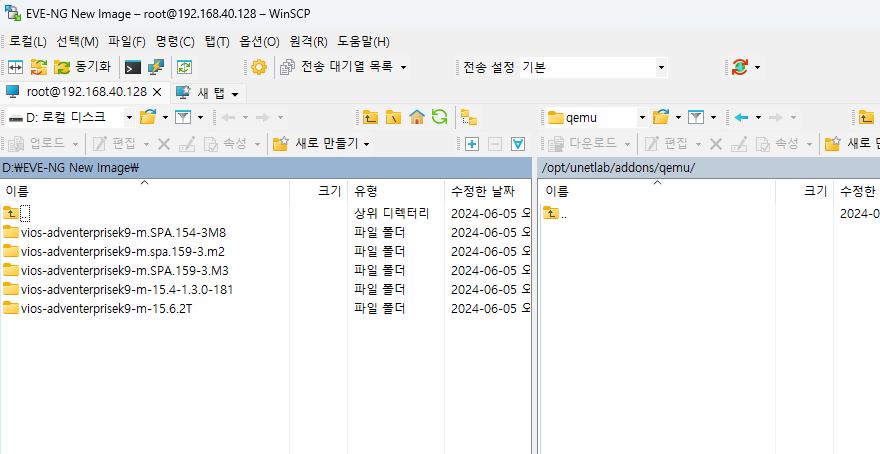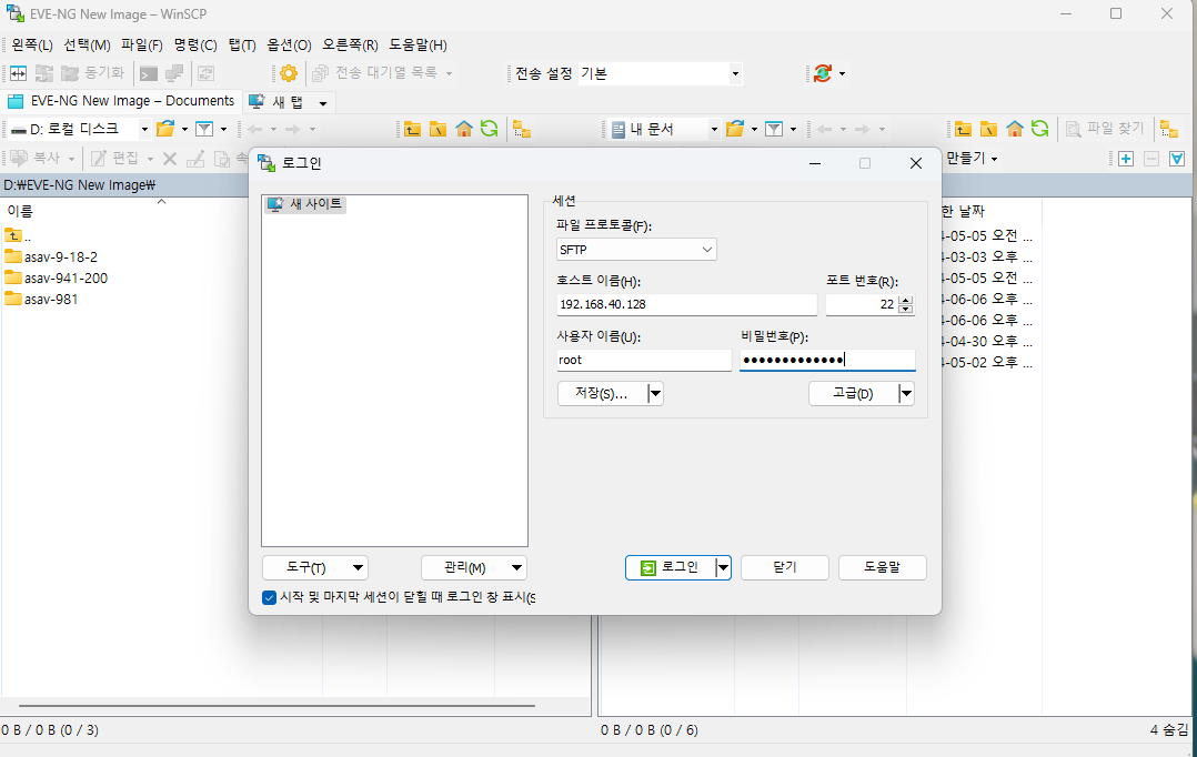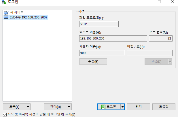 5. winscp를 이용해서 EVE-NG에 접속 합니다.