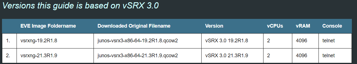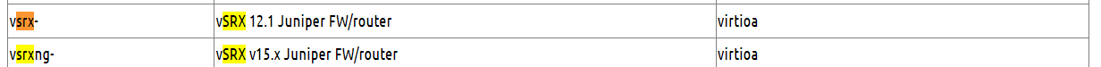 | vsrxng- | vSRX v15.x Juniper FW/router | virtioa |