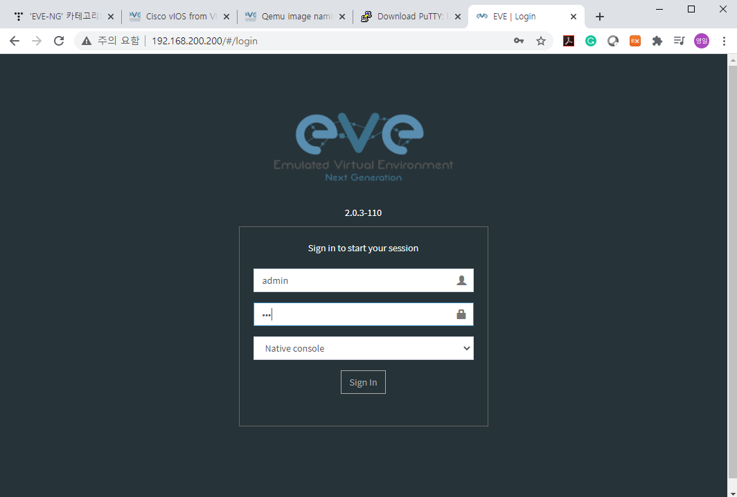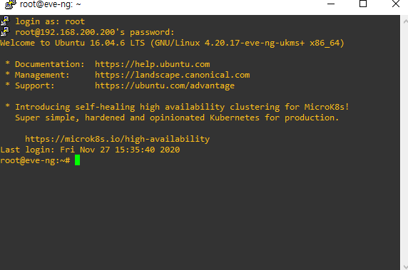 7. putty를 이용해서 EVE-NG 접속 합니다.