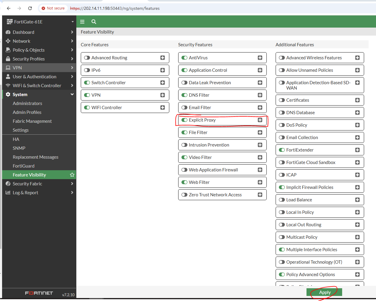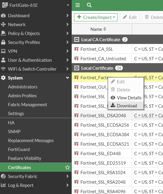 FortiGate-VM64-KVM (port1) # show config system interface edit "port1" set vdom "root" set ip 192.168.100.3 255.255.255.0 set allowaccess ping https ssh http fgfm set type physical set snmp-index 1 next end
