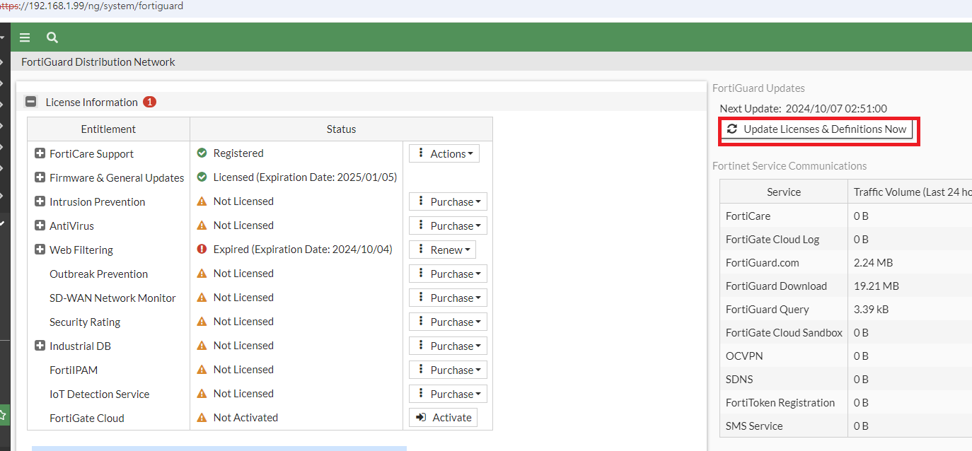 Fortigate에서 WAN01에서 케이블을 제거 합니다.