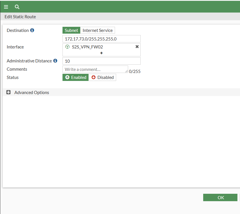 Remote IP: FW01 WAN에 IP를 입력합니다.