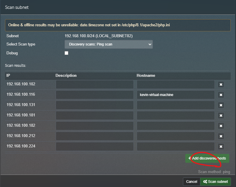 192.168.10.0/24를 스캔을 하고 아래 처럼 사용중인 IP주소에 Description를 설정해서 관리 가능 합니다.