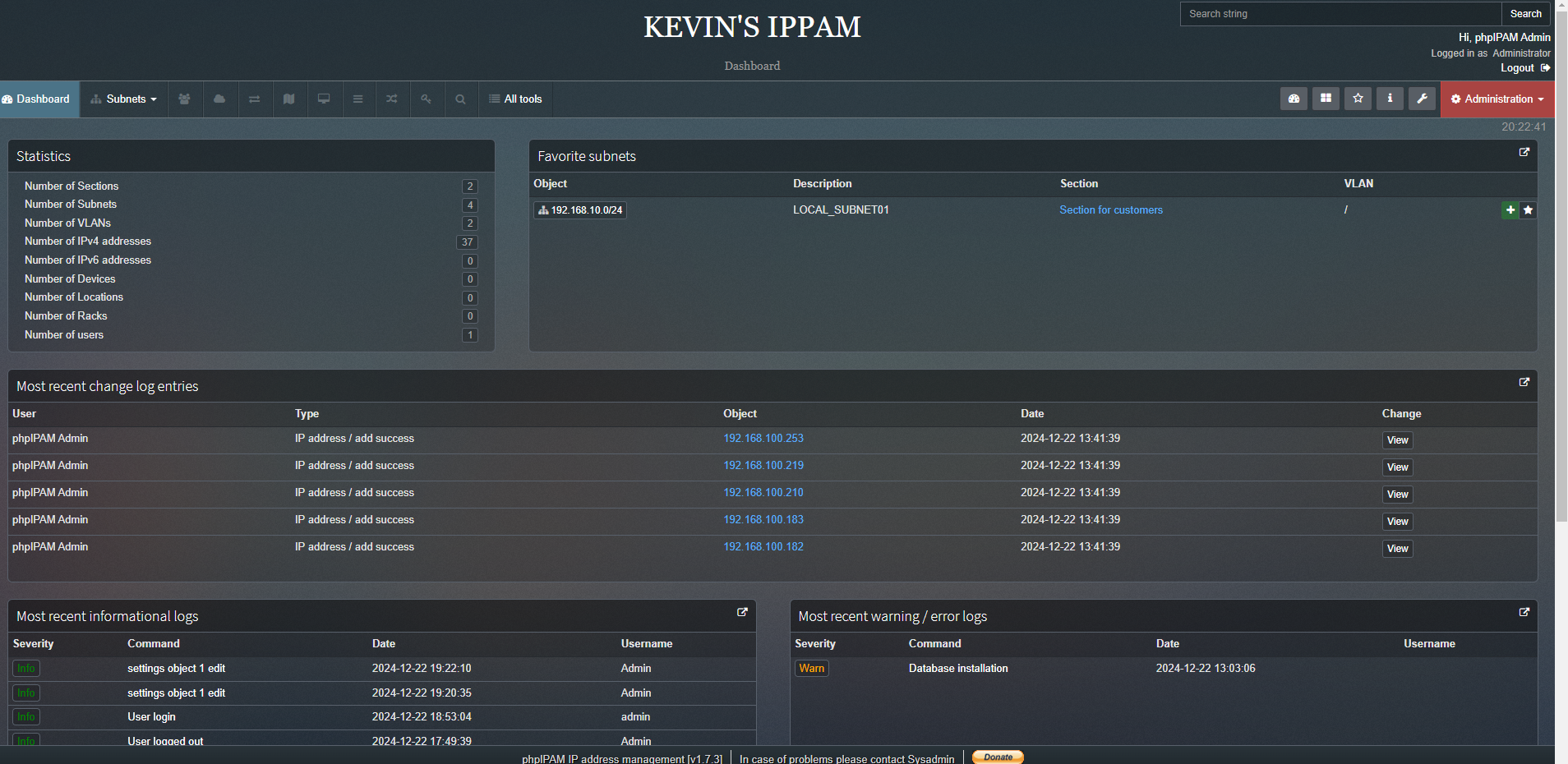 phpipam is an open-source web IP address management application (IPAM). Its goal is to provide light, modern and useful IP address management. It is php-based application with MySQL database backend, using jQuery libraries, ajax and HTML5/CSS3 features.