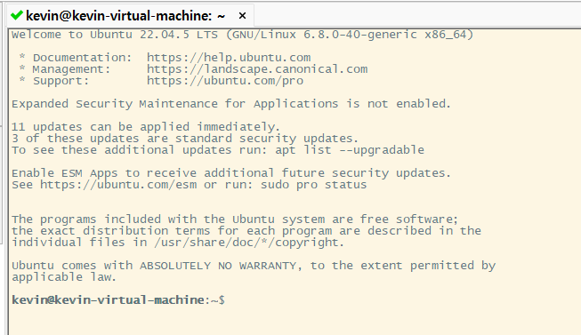 root@kevin-virtual-machine:/home/kevin# mysql -u root -p Enter password: Welcome to the MariaDB monitor. Commands end with ; or \g. Your MariaDB connection id is 39 Server version: 10.6.18-MariaDB-0ubuntu0.22.04.1 Ubuntu 22.04