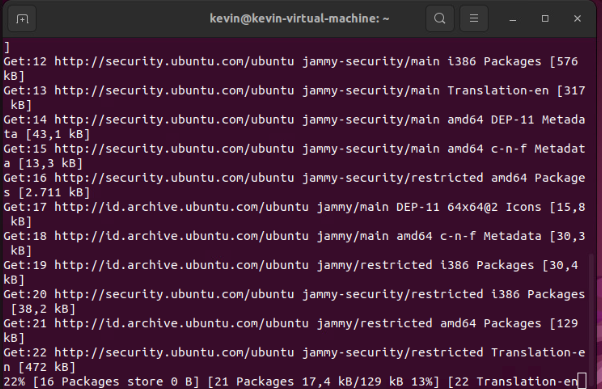 kevin@kevin-virtual-machine:~$ sudo apt-get install fping [sudo] password for kevin: Reading package lists... Done Building dependency tree... Done Reading state information... Done The following NEW packages will be installed: fping 0 upgraded, 1 newly installed, 0 to remove and 3 not upgraded. Need to get 32,0 kB of archives. After this operation, 90,1 kB of additional disk space will be used. Get:1 http://id.archive.ubuntu.com/ubuntu jammy/universe amd64 fping amd64 5.1-1 [32,0 kB] Fetched 32,0 kB in 0s (201 kB/s) Selecting previously unselected package fping. (Reading database ... 171483 files and directories currently installed.) Preparing to unpack .../archives/fping_5.1-1_amd64.deb ... Unpacking fping (5.1-1) ... Setting up fping (5.1-1) ... Processing triggers for man-db (2.10.2-1) ... kevin@kevin-virtual-machine:~$ sudo apt-get install php-snmp Reading package lists... Done Building dependency tree... Done Reading state information... Done The following additional packages will be installed: php8.1-snmp snmp The following NEW packages will be installed: php-snmp php8.1-snmp snmp 0 upgraded, 3 newly installed, 0 to remove and 3 not upgraded. Need to get 201 kB of archives. After this operation, 810 kB of additional disk space will be used. Do you want to continue? [Y/n] y Get:1 http://id.archive.ubuntu.com/ubuntu jammy-updates/main amd64 php8.1-snmp amd64 8.1.2-1ubuntu2.20 [23,2 kB] Get:2 http://id.archive.ubuntu.com/ubuntu jammy/main amd64 php-snmp all 2:8.1+92ubuntu1 [1.836 B] Get:3 http://id.archive.ubuntu.com/ubuntu jammy-updates/main amd64 snmp amd64 5.9.1+dfsg-1ubuntu2.6 [176 kB] Fetched 201 kB in 0s (689 kB/s) Selecting previously unselected package php8.1-snmp. (Reading database ... 171493 files and directories currently installed.) Preparing to unpack .../php8.1-snmp_8.1.2-1ubuntu2.20_amd64.deb ... Unpacking php8.1-snmp (8.1.2-1ubuntu2.20) ... Selecting previously unselected package php-snmp. Preparing to unpack .../php-snmp_2%3a8.1+92ubuntu1_all.deb ... Unpacking php-snmp (2:8.1+92ubuntu1) ... Selecting previously unselected package snmp. Preparing to unpack .../snmp_5.9.1+dfsg-1ubuntu2.6_amd64.deb ... Unpacking snmp (5.9.1+dfsg-1ubuntu2.6) ... Setting up php8.1-snmp (8.1.2-1ubuntu2.20) ...
